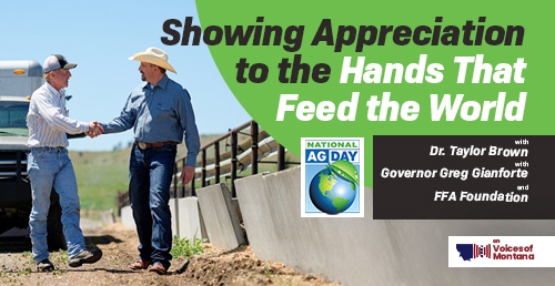Voices of Montana celebrates National Agriculture Appreciation Day with a special program highlighting Montana’s number one industry. Longtime farm broadcaster, rancher, and former legislator Dr. Taylor Brown kicked-off the show looking at the evolving challenges and opportunities in agriculture. Montana