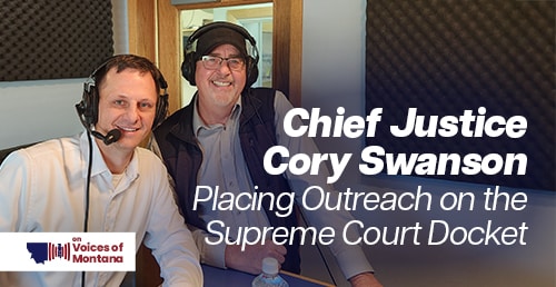 It was indeed an honor to have the Honorable Cory Swanson, Chief Justice of the Montana Supreme Court, visit in-studio. The outreach represented one of Justice Swanson’s tenets in judicial reform; a more public-facing court system. Click on the podcast